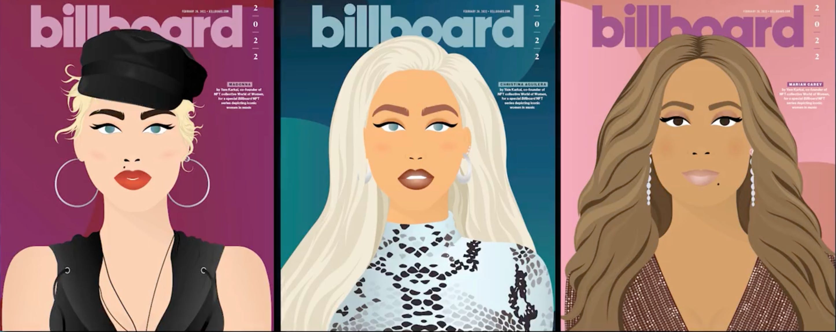World of Women and Billboard partnered with Christina Aguilera, Madonna and Mariah Carey to create three WoW x Billboard Magazine Cover NFTs. Launched during Billboard’s Women in Music event, the collaborative covers are being auctioned on FTX (link here) and a portion of the proceeds will benefit charities chosen by each cover star.