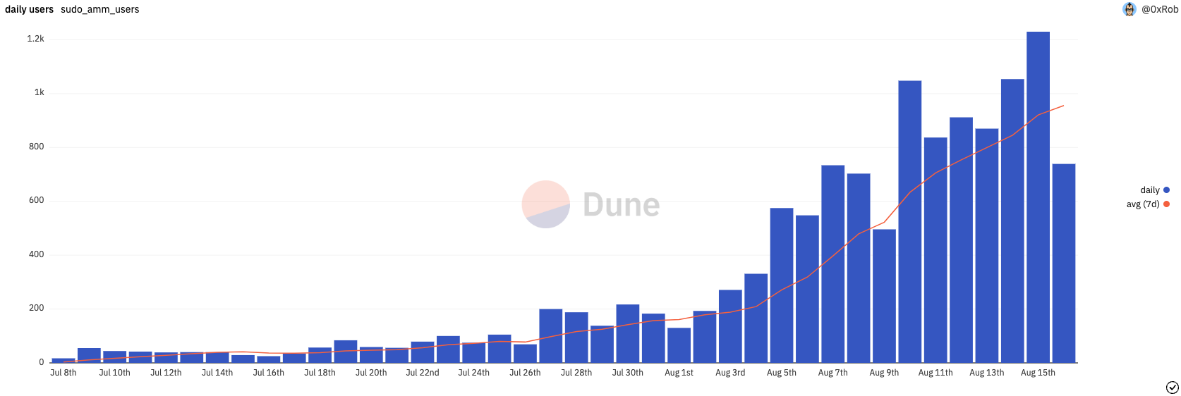 Sudoswap is an on-chain AMM marketplace. It functions similarly to Uniswap or any other decentralized exchange: tokens are placed in a pool and balanced in accordance with that pool’s rules. Pools can have a linear or exponential structure and a few other factors impact the performance of each particular pool. The marketplace was launched in early July and has gotten some buzz lately.