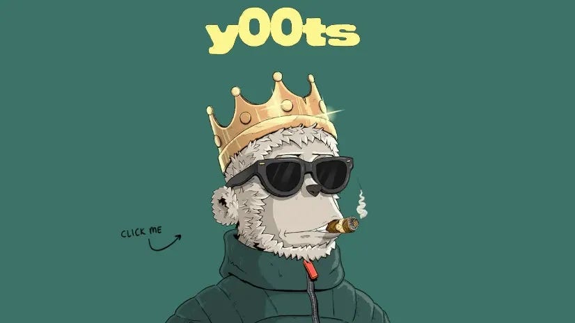 And now for the rare Solana project. From the DeGods team comes y00ts, a project that has opted for iteration instead of imitation. While other projects reward those who grind on Discord, y00ts has created a Scholarship application for potential holders - connect your wallet and Twitter, answer a few questions and wait to see if you’re selected. They’ve also set out to reimagine avatar customization and ownership through the y00ts store. Artists can submit custom traits to the y00ts store where, if chosen, they will be sold for a limited time with artists collecting a percentage of sales revenue. This concept is still being worked out, but you can read more of their ideas here. y00ts will cost 375 $DUST, DeGod’s native token.