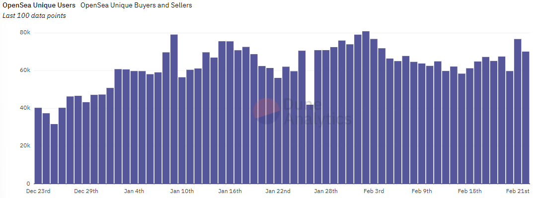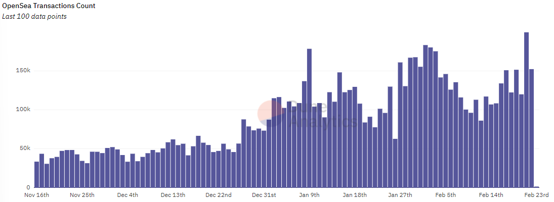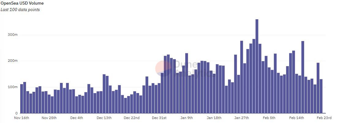 MultiverseVM describes itself as “an open metaverse for all NFTs” and recently announced their single player alpha will release sometime in March, spurring demand over the past week. XenoInfinity, a companion collection of in-game avatars, released in mid-January and also saw increased volume. While there are still few details about the game itself, MVM and XenoInfinity’s mission to build an “open metaverse” is receiving plenty of support.