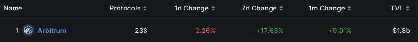 Arbitrum’s token will officially be tradeable on Thursday and you can monitor real-time data on the airdrop through Westie’s great dashboard. As mentioned, the entire Arbitrum ecosystem has been one of the best performing sectors since Arbitrum’s token confirmation last Thursday. TVL on Arbi has continually increased over the past few months and will receive a massive capital injection on Thursday.