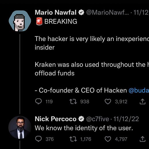 FTX updates — Vox article full of Sam DMs showcasing his insanity, Bahamas SEC says it transferred FTX assets to a wallet it controls, bankruptcy fillings posted & full of tidbits that are too insane for parody, House Financial Services Committee to hold a hearing on FTX in December, SBF cashed out $300M of $420M October 2021 fundraise
