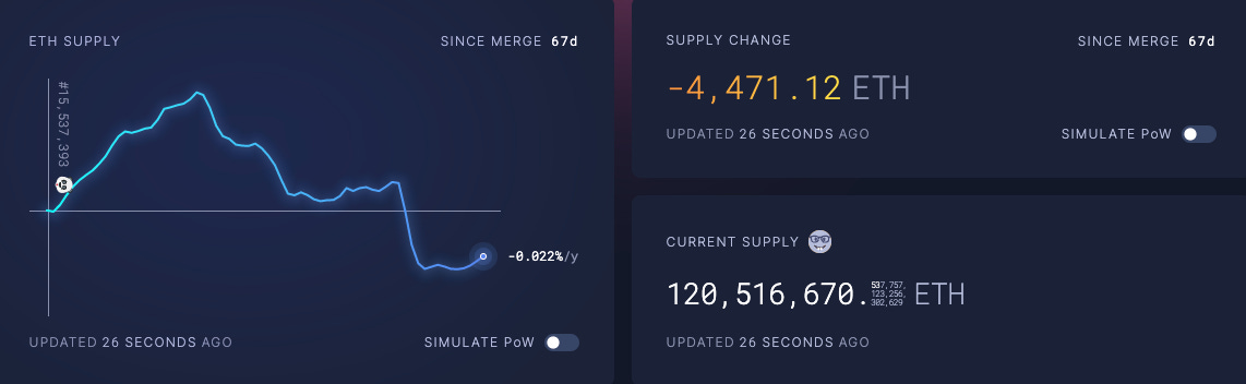 ETH’s structural changes (supply reduction and EIP-1559 burn) continue to result in its deflationary supply since the merge as it positions itself for extreme reflexivity when broad risk-on returns to crypto markets