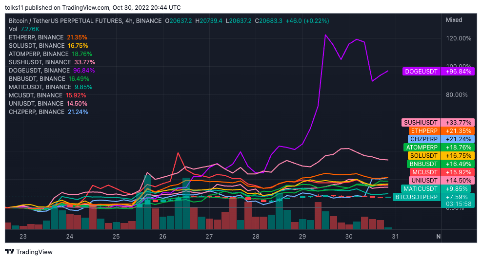 tl;dr: DOGE as Elon’s social token, BNB’s continued strength & semi TWTR derivative, FTX entering stablecoin wars, short liquidations, & the heavy ETH burn week ahead