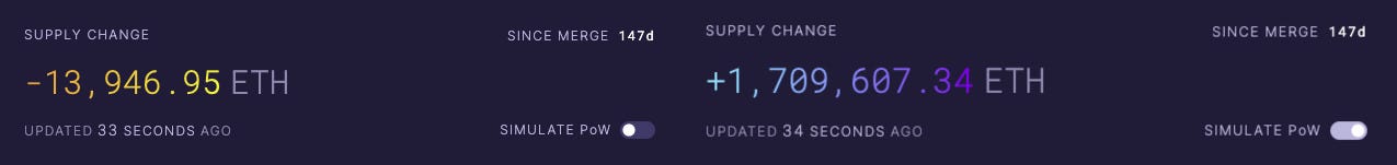 ETH’s structural changes leading to a decreasing supply, something I’ve written about numerous times, is the last, and healthiest, ongoing trend. As you can see, the protocol upgrades of EIP-1559 and the transition to PoS have resulted in a net reduction of ~1.7M of ETH issuance worth around ~$2.8B. This creates a dramatic, underlying shift in the capital needed to support and eventually expand the price of ETH the asset.