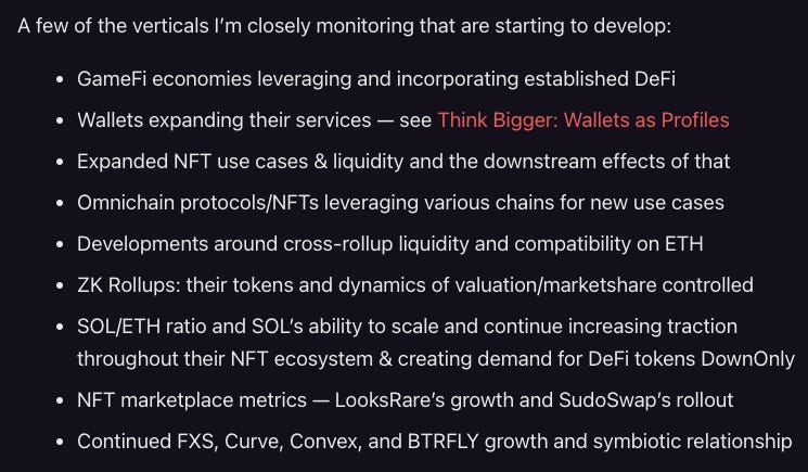 inside there you’ll find an extensive overview covering *most* of the crypto ecosystem along with my thoughts on current sector leaders, protocols to watch, trends developing, and my interpretation of the market through EoY and onwards.