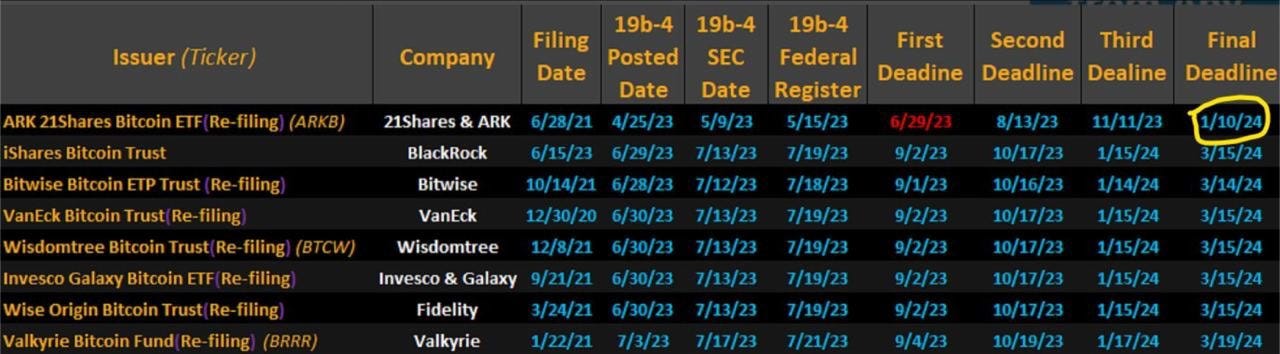 While there are of course still hurdles (FTX/Celsius sales, Binance x DOJ case, potential US government BTC sells) and unknown timelines for ETF approvals, the path for upwards expansion in the short, mid and long term clearly outweighs the one time hurdles listed above. In other spot BTC ETF news, the SEC delays Ark 21 Shares BTC spot ETF application was once again delayed, with the final deadline now set for January 10th, 2024.