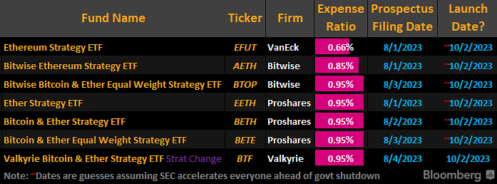 Following the logic of Grayscale’s case (futures ETFs for BTC should allow spot ETF approval), ETH spot ETFs seem likely to gain approval by the end of 2024 as we’re now hours away from the first deadline where the SEC could delay a decision or grant approval for ETH futures ETFs (Valkyrie’s first, October 2nd). From what we know, it seems incredibly likely that for the first time, the SEC will approve essentially all applications for ETH futures ETFs throughout October. As Bloomberg’s Senior ETF analyst Eric Balchunas says, ETH futures ETFs are “highly likely (90% odds) to start rolling out in early October”.