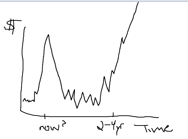 It’s entirely possible that with the launch of the Reddit Marketplace, we’ll see supply skyrocket and a lot of the prices of these NFTs plummet. One of my friends who works in Traditional Finance/Real Estate made an extremely professional chart that sums up a very possible route for these NFTs.