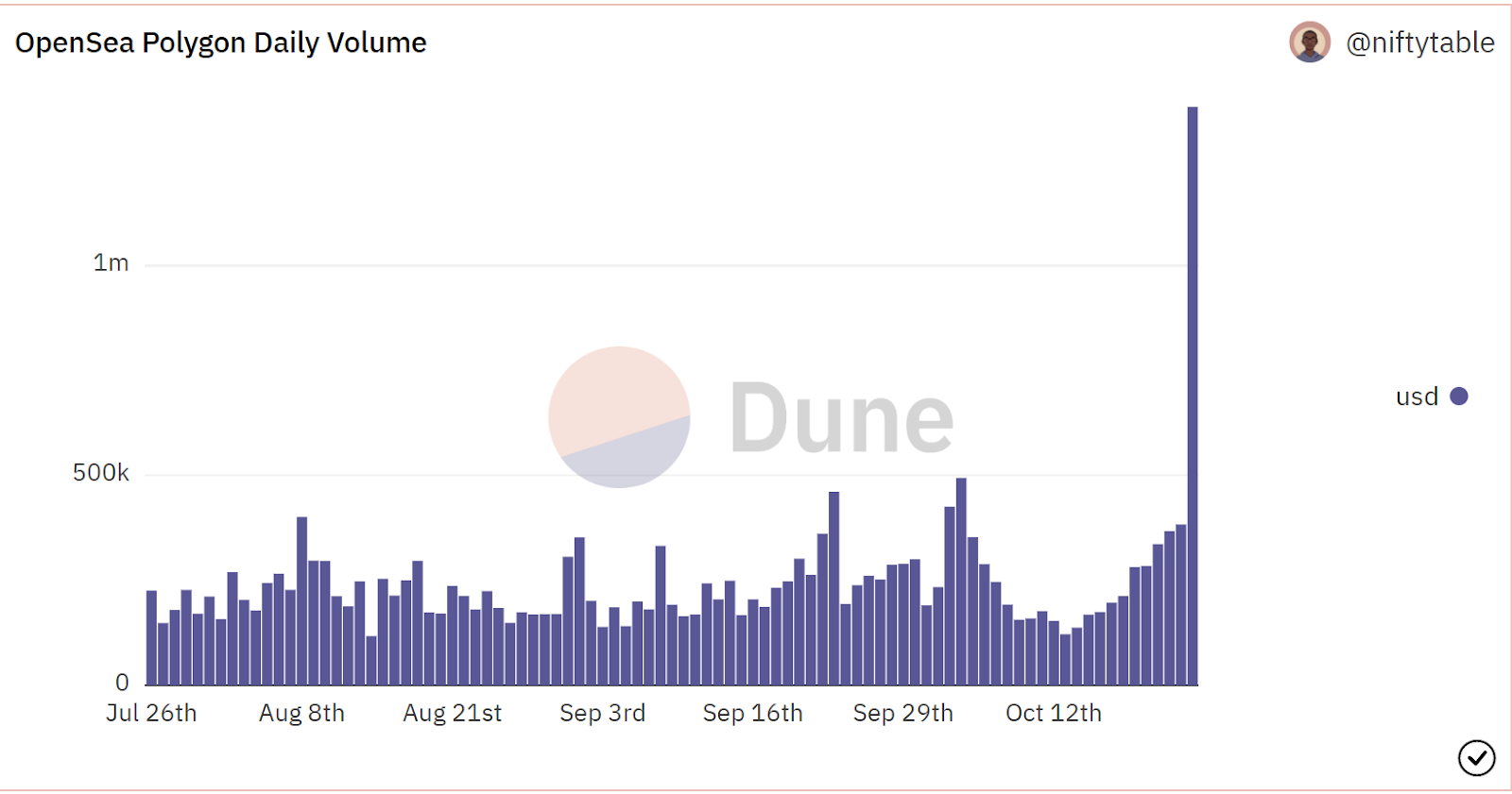 Breaking it down in percentages, there are less than 1% of 430m users that have a Polygon Wallet with 3 million wallets that we know publicly (known or unknown to them). Then from that, recent data suggest that there are roughly 2-4k wallets that have any level of on-chain activity (which is what has caused all this trading volume). That again is more or less 1% of the Polygon wallets.