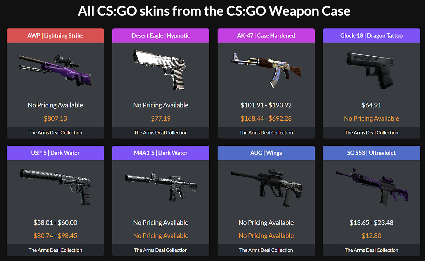 These crates are retired and replaced every so often and in doing so, the supply completely stops and the collection is capped. The earliest collection commands a respectable premium (if you can even buy them). Below are the stats from the earliest collection and while they don’t look as good or polished as the new skins released, seeing the AWP or AK-47 in-game is a rare sight and touted as collector items. Due to time and the steam platform, some people never logged back in, some were banned disbarring them from trading, and some are in collectors' personal accounts making them extremely difficult to acquire.