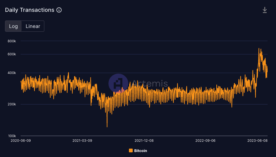 While activity has since slowed, there have now been upwards of 10M (!!) Inscriptions forever etched into the BTC blockchain since their launch in ~March. BTC daily transactions have doubled from their baseline levels of the past 3 years while DEX volume on BTC has increased by multiples as people continue experimenting.